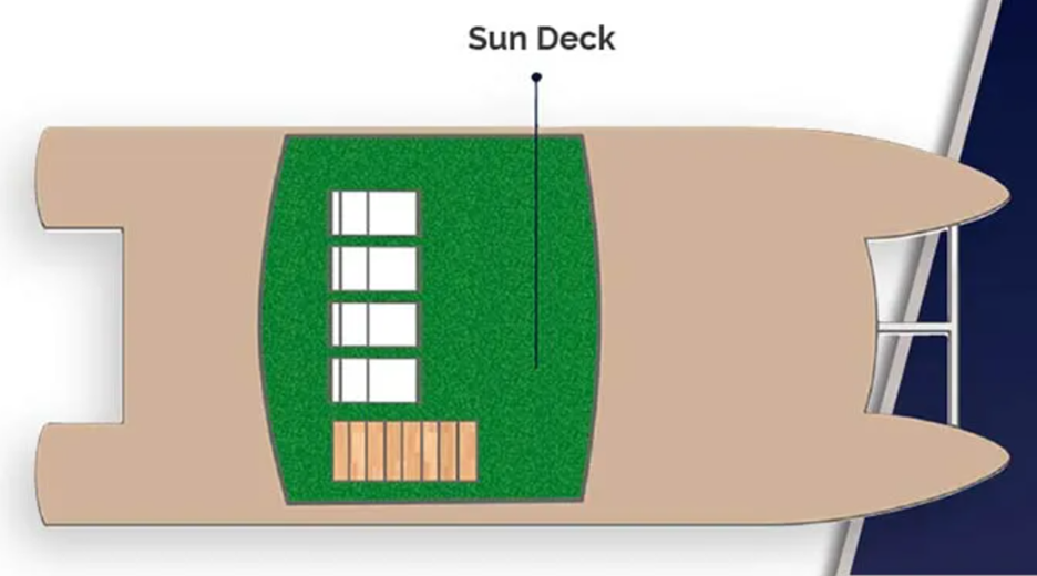 The Sun Deck offers the perfect space to relax and unwind. With comfortable sun loungers and a spacious open solarium, guests can enjoy the fresh ocean breeze, admire panoramic views, and witness unforgettable sunsets while sailing through the Galapagos Islands.